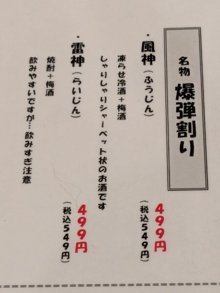 2025.12.20 木村浩 akasaka ちょっと吉祥寺へ! ウソです! 昼飯に、吉祥寺まで! な!わけは無いですね! 鶏は二本足で立って コケない! 相撲では鶏をよく食べてる 縁起かつぎですね さらにカツ!勝つ! ダブルの縁起かつぎで いろんなサワーがさんですね! 4 件のコメント 「爆弾割り」ですか。 凄いネーミングのドリンクがあるものですね。 返信する よく分からないのも かなりありますね そのうち はじからはじを 挑戦したくなって 返信する さすが チャレンジ精神 旺盛ですね。 返信する 単なる酒好き なだけですよ! 昔は、今みたく 種類が無くても 全部は出来なかったです 再挑戦!! 返信する コメントを残す コメントをキャンセルメールアドレスが公開されることはありません。 ※ が付いている欄は必須項目ですコメント ※ 名前 メール サイト 次回のコメントで使用するためブラウザーに自分の名前、メールアドレス、サイトを保存する。