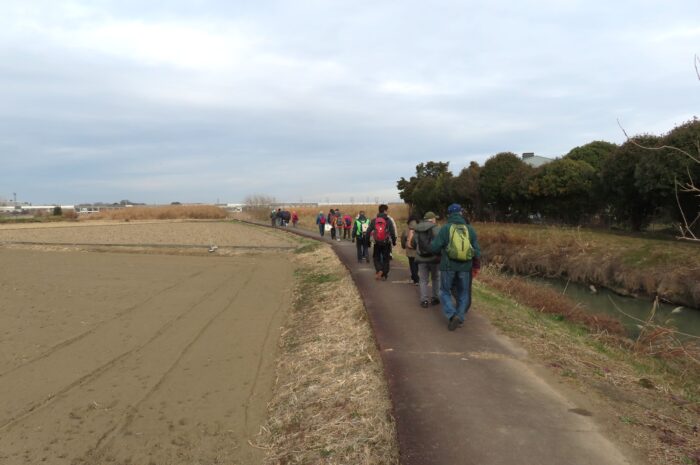 綾瀬川に沿って設けられている伊奈町ジョギングロードを参加者と共に