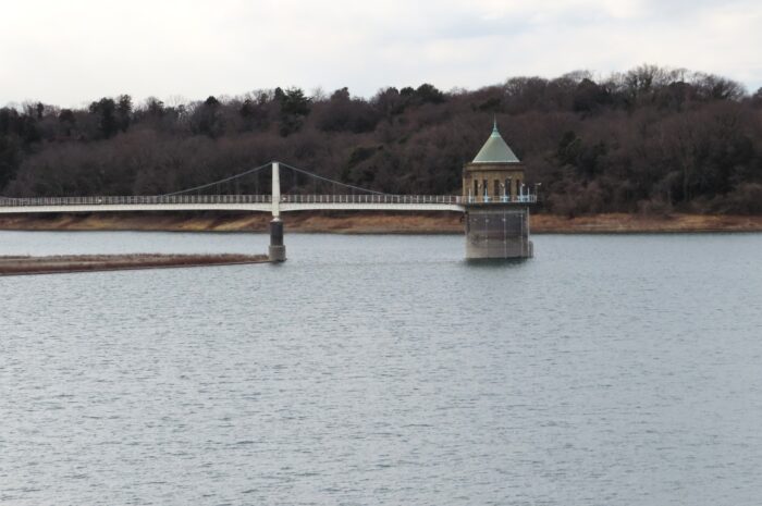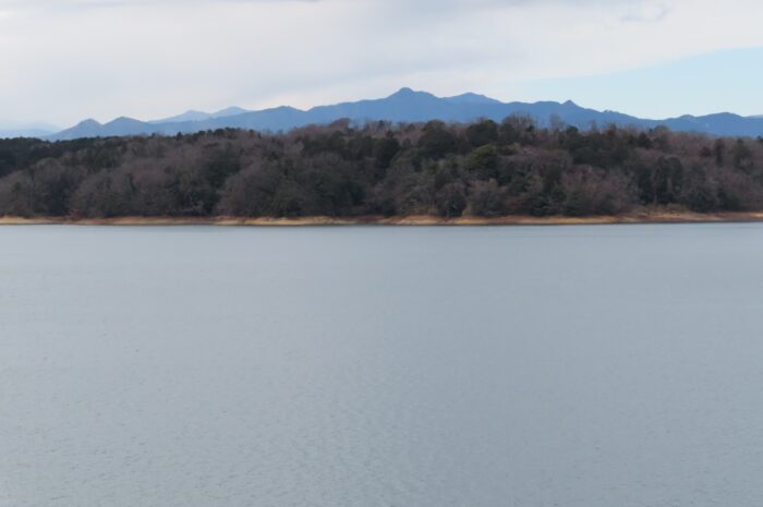 山口貯水池(狭山湖)越しに望める奥多摩の山々 天候の関係で富士山は望めませんでした