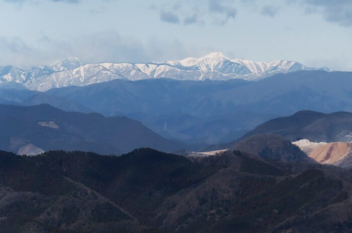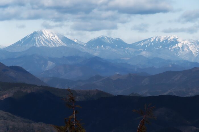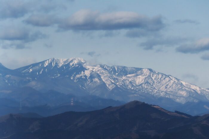 晃石山頂から日光表連山を望む (左から男体山・大真名子山・女峰山)