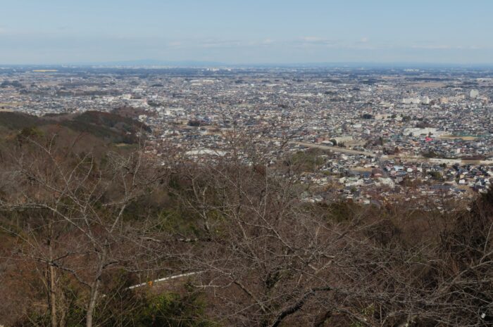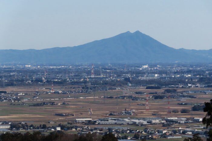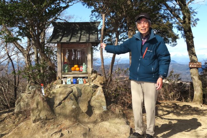 アイキャッチ画像はお大平山系の最高峰である晃石山(419.04m)山頂にて(一等三角点峰) 背景に見えるのは男体山