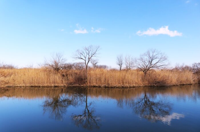 鳥たちが不在の多自然池
