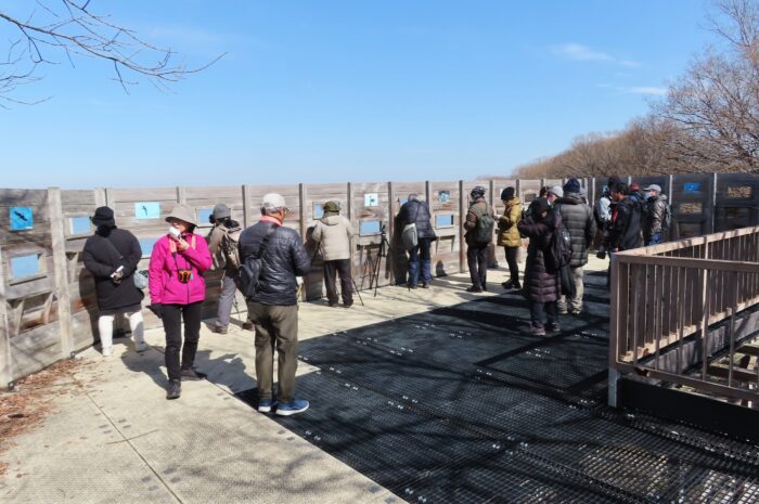 野鳥観察台での観察風景
