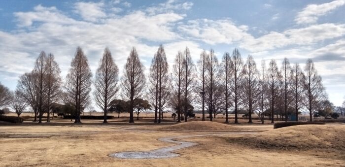 子供ひろばにある落葉したメタセコイヤ並木