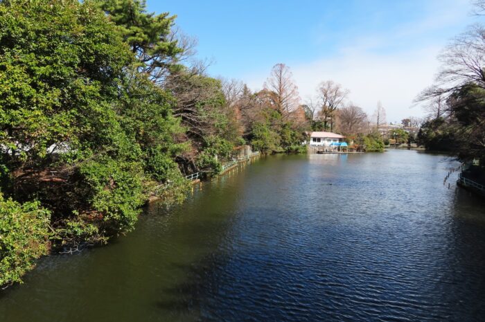 遊歩道に囲まれたひょうたん形の大きな池のある「武蔵関公園」石神井川につながります