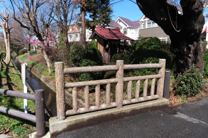 千川上水を跨ぐ「更新橋」橋のたもとには庚申塔が祀られている