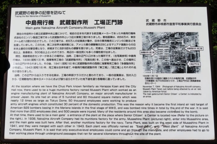 中島飛行機武蔵野製作所正門跡説明パネル