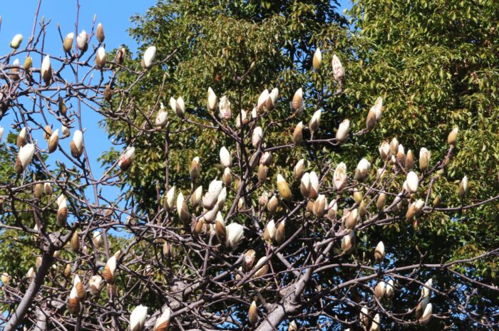 遊歩道に咲き始めていたモクレン