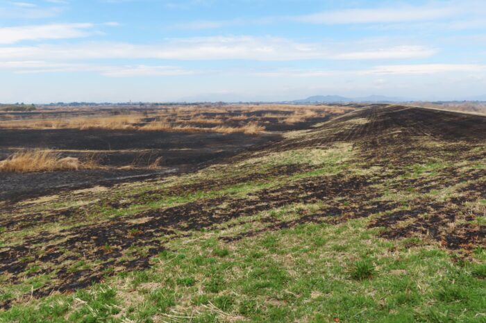 焼け跡が残る渡良瀬遊水地第一調整池