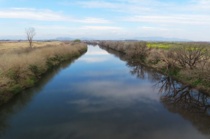 新赤麻橋から望む緩やかな流れの渡良瀬川
