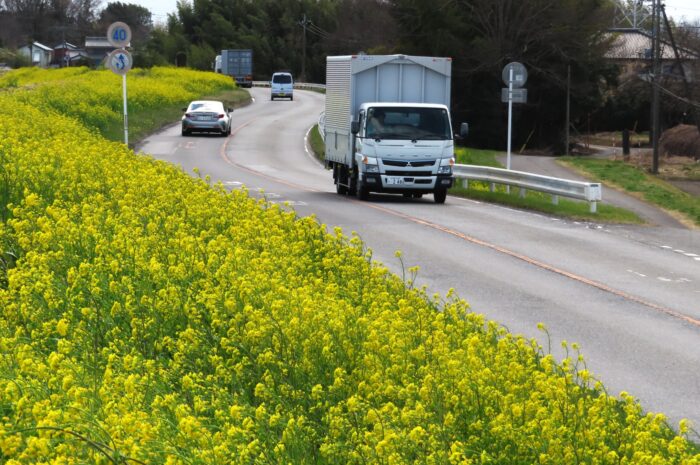 県道9号線に沿って咲きほこる菜の花