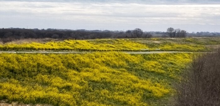 渡良瀬遊水地と渡良瀬川を分けている土手に咲く菜の花