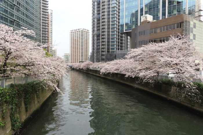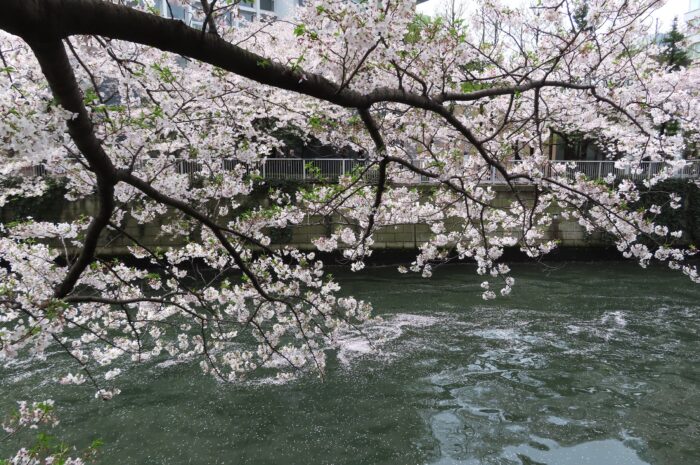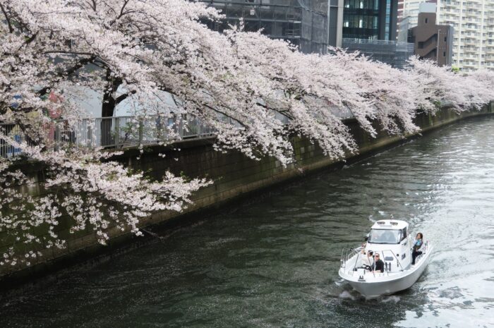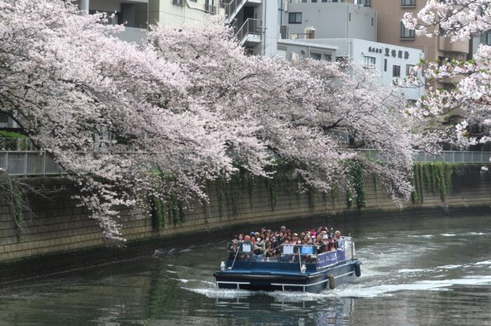 アイキャッチ画像はお花見の遊覧船が行き来している目黒川
