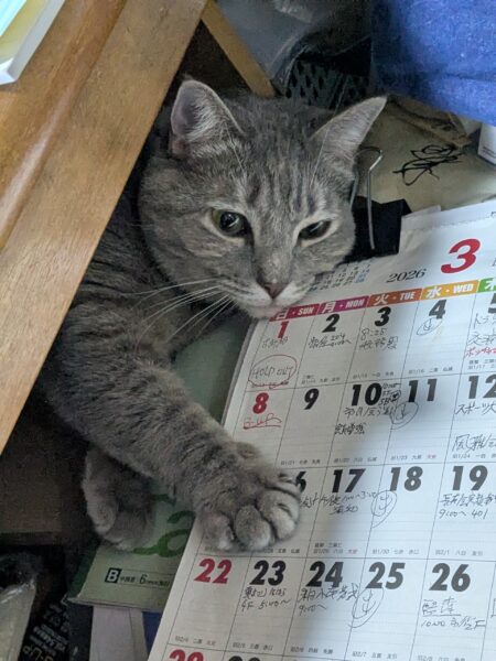 抑えられたまま! 猫と、ノンビリ\(°o°)/ 昨日呑み過ぎなんで