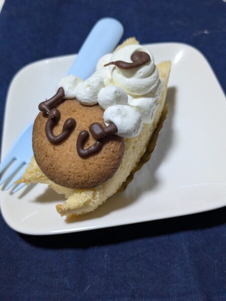 ケーキを貰いました! ひつじ! だそうです\(°o°)/ どうも、偶然のようでしたが ひつじ年なんで\(°o°)/ 中は、バナナでした!